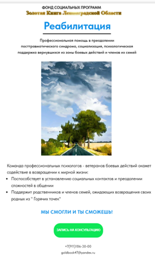 Cтартовал социальный проект, включающий психологическую и социальную реабилитацию воинов, принявших участие в боевых действиях и членов их семей. Проект направлен на оказание помощи в возвращении к мирной жизни, преодолении посттравматического синдрома, а также на работу с родственниками. Кроме того, проект включает в себя спортивно-оздоровительный блок и патриотическую работу с детьми участников СВО, в том числе раненых и погибших. Проект рассчитан не только на участников СВО, но и на участников других вооружённых конфликтов последних десятилетий.